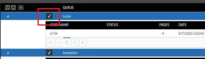 Each row also has a Complete All button, designated by a checkmark icon. The button appears to the left of the Queue Name in the row. The diagram below (Figure 2) shows the location of the Complete All button.